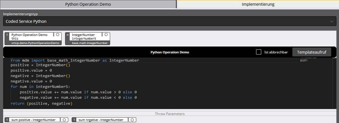 So that Python programmers feel really at home in Xyna Factory, we have not slaughtered one of the "sacred cows" of the Java community, but have made it optional: the getter and setter methods. Java programmers consider these to be an almost mandatory criterion for good style. In Python, people rely on the shorter dot notation and consider this to be pragmatic and concise. We understand both approaches and their respective motivations. Therefore, Xyna Factory views these different programming cultures liberally and would like to welcome all Python programmers as first class citizens. To this end, we have implemented their native dot notation as an alternative syntax and added it to the JEP functionality. In this way, we enable every programmer to express themselves according to their own principles.