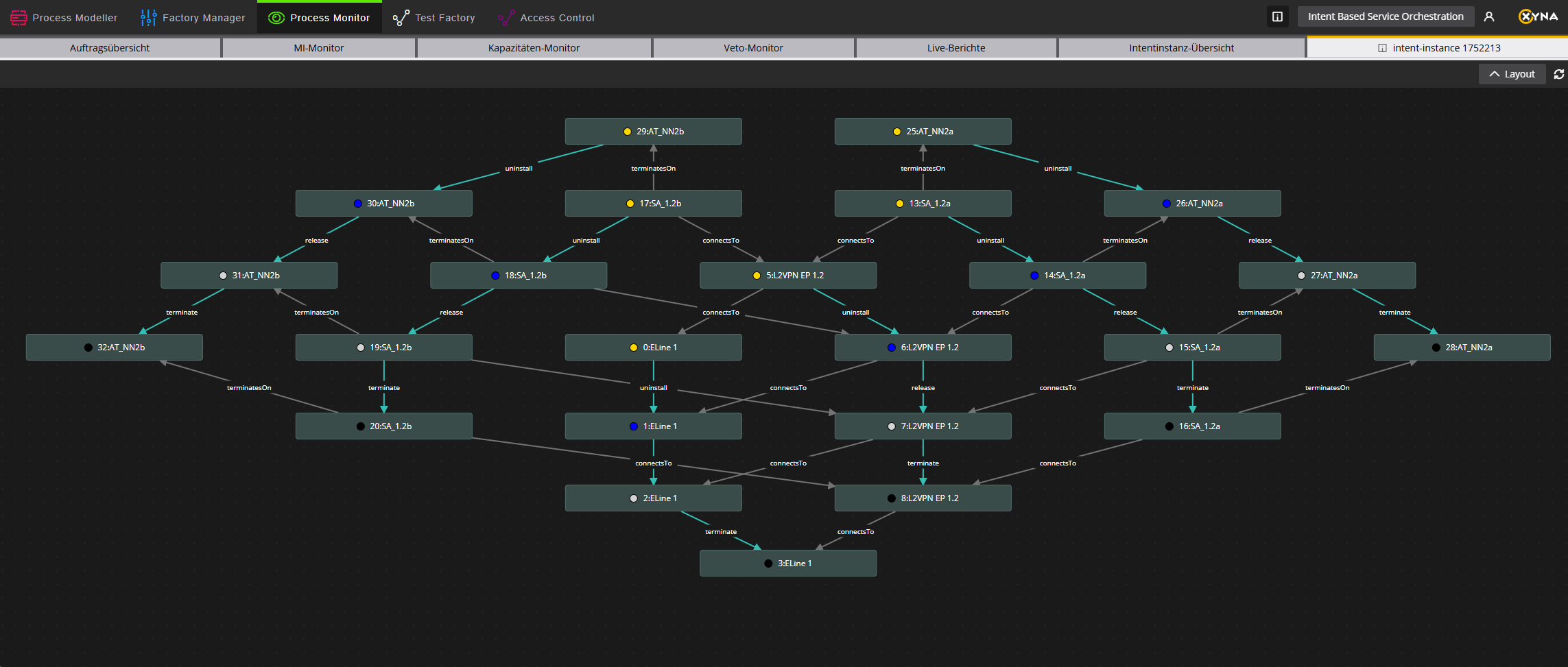 And because we've been able to support interesting customer projects in this context over the past few months, which focus on implementing such IbO systems, Xyna has also learned a lot in this area: for example, the Xyna Scheduler (part of the server) can process appropriately prepared intents using the order recurrence function – and the Xyna Process Monitor can, and this is truly new, also visualize the generated graphs: