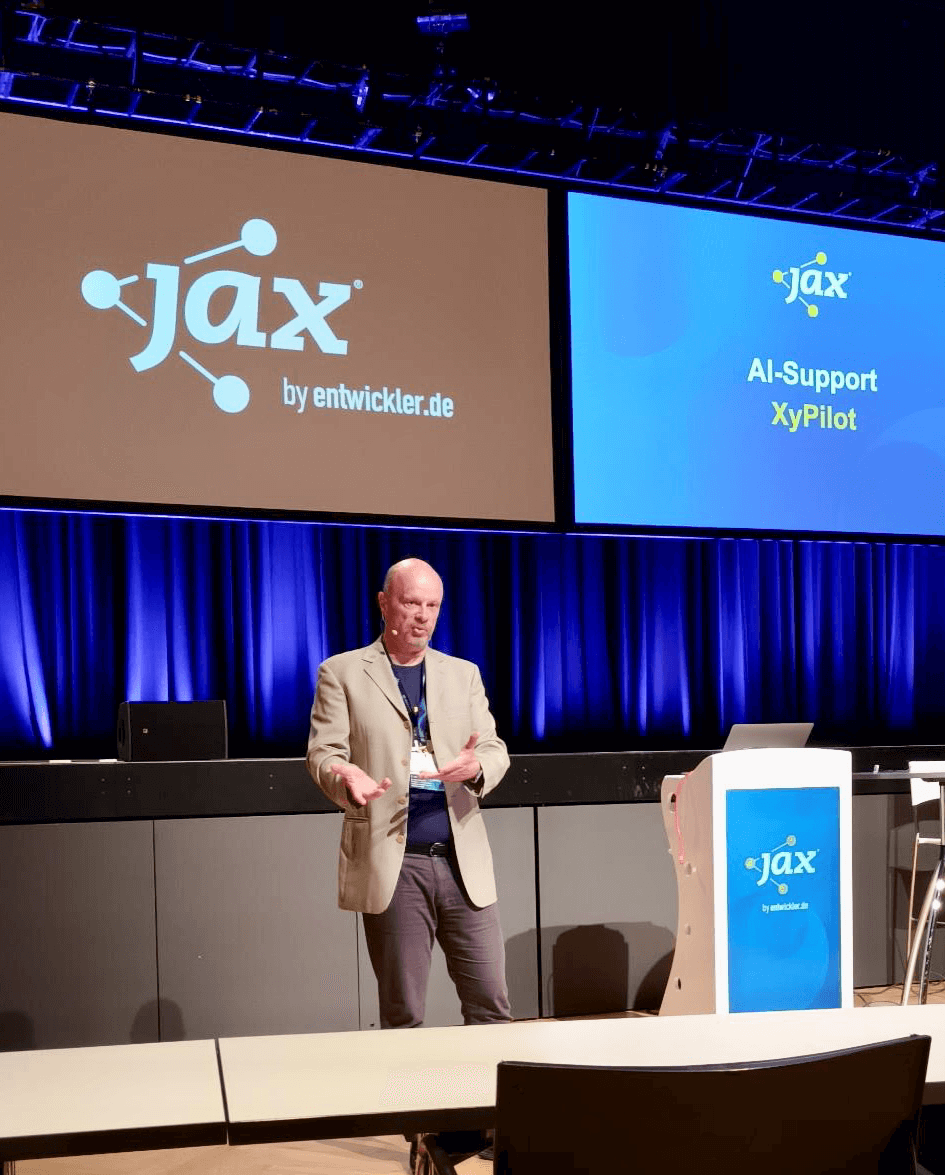 Mit dem von GIP / Xyna.com als Hauptsponsor unterstützten Agile Innovation Day (https://jax.de/agile-innovation-day/) ist die JAX (https://jax.de/mainz/) gestern erfolgreich in die Messewoche gestartet. In seinem Vortrag „Konzentration auf das Wesentliche! Die Vorteile von grafischer Workflow-Modellierung mit Xyna Factory“ sowie der anschließenden Podiumsdiskussion stellte Dr. Alexander Ebbes, CTO und Chefarchitekt der Xyna Factory, den XyPilo als innovative KI-Erweiterung des Deep Modelings vor.