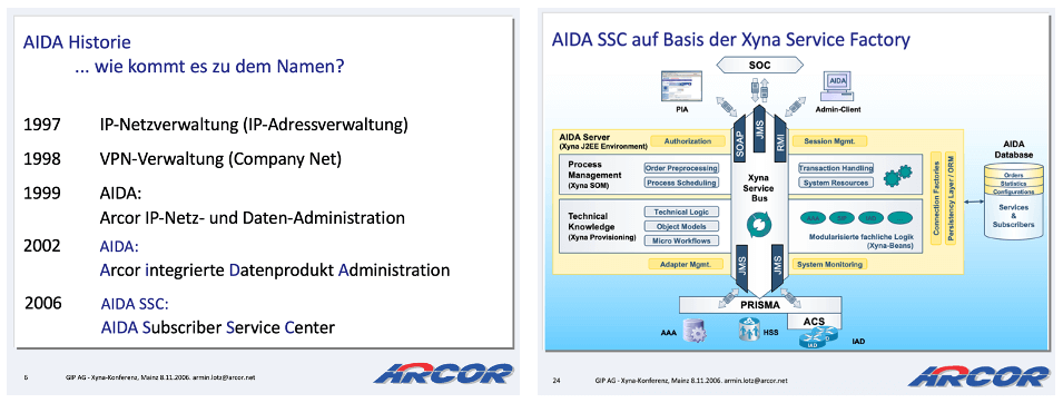 Seit somit quasi unendlich langer Zeit besteht unsere Partnerschaft mit Vodafone, was uns stolz und dankbar macht. Schon auf der ersten Xyna-Konferenz im Jahr 2006 berichtete Armin Lotz von den Anfängen der Zusammenarbeit, von der ersten IP-Adressdatenbank über zur OSS-Suite der AIDA-Systeme: