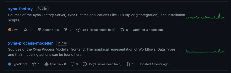 Wer in der Xyna Community auf GitHub vorbeischaut wird bemerken, dass unsere Repositories dort rege bespielt, aktualisiert und weiterentwickelt werden: